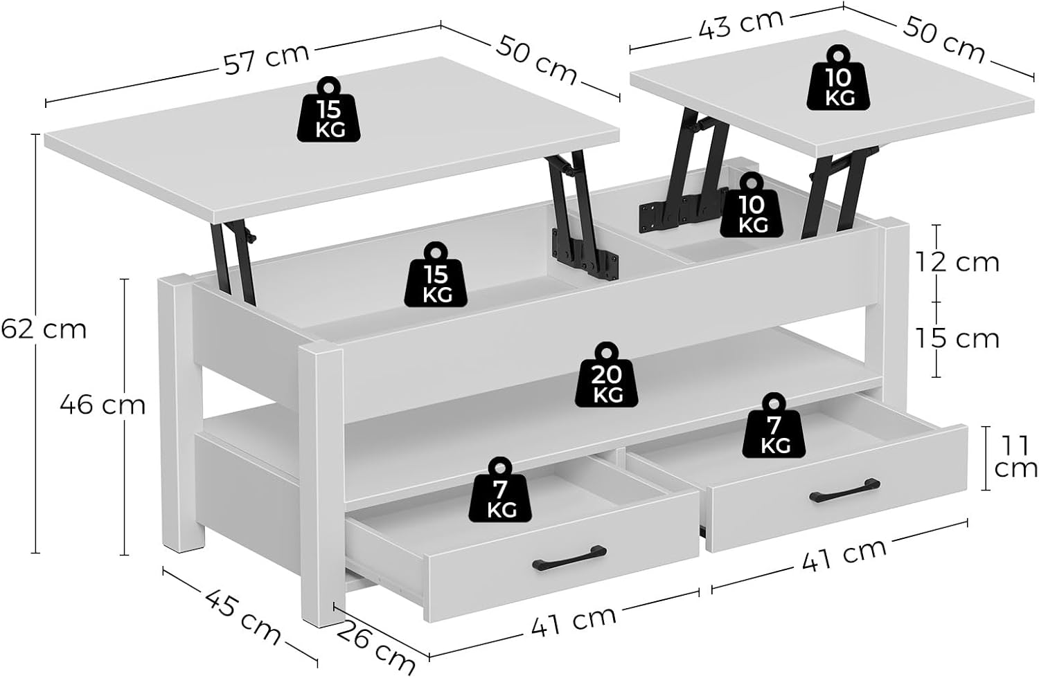 Gemaakt van duurzaam hout en uitgerust met een hoogwaardig gasliftmechanisme, gaan de bladen soepel en geruisloos omhoog en omlaag. Ontworpen voor dagelijks gebruik blijft deze salontafel stabiel, zelfs bij zware belasting, ideaal voor wie een betrouwbare en duurzame meubel zoekt.