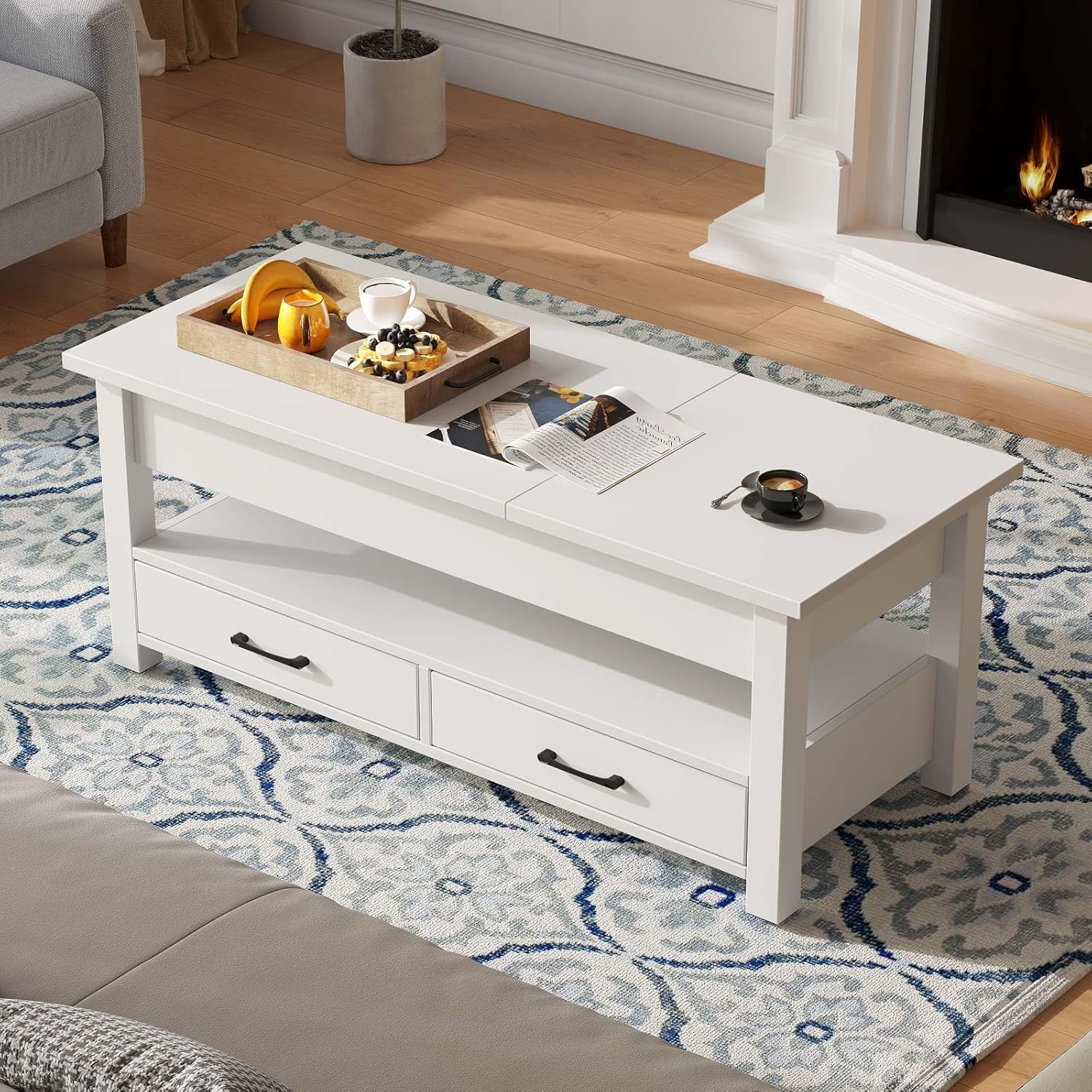 Houd je woonkamer netjes met twee ruime verborgen compartimenten onder de opklapbare bladen, ideaal voor laptops, afstandsbedieningen of boeken. Een open plank biedt ruimte om je favoriete decoratieve items te tonen, terwijl twee schuiflades snelle toegang bieden tot alledaagse voorwerpen. Alles blijft georganiseerd en binnen handbereik, zonder in te leveren op stijl.