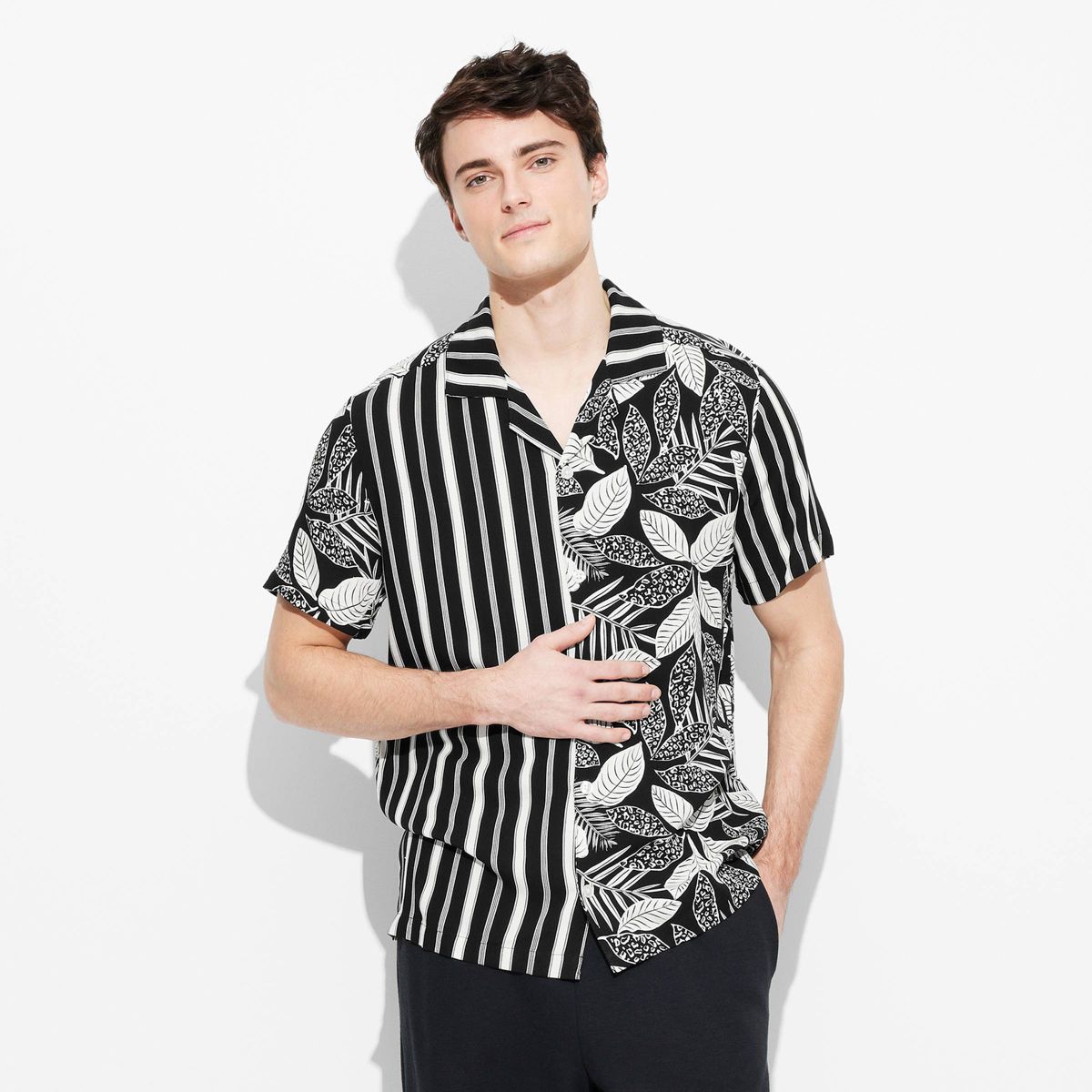 Camicia da resort a maniche corte in tessuto con caratteristico colletto a punta e abbottonatura frontale lunga. Vestibilità casual che arriva sotto la vita. Realizzata in rayon morbido e leggero, per un comfort che dura tutto il giorno.